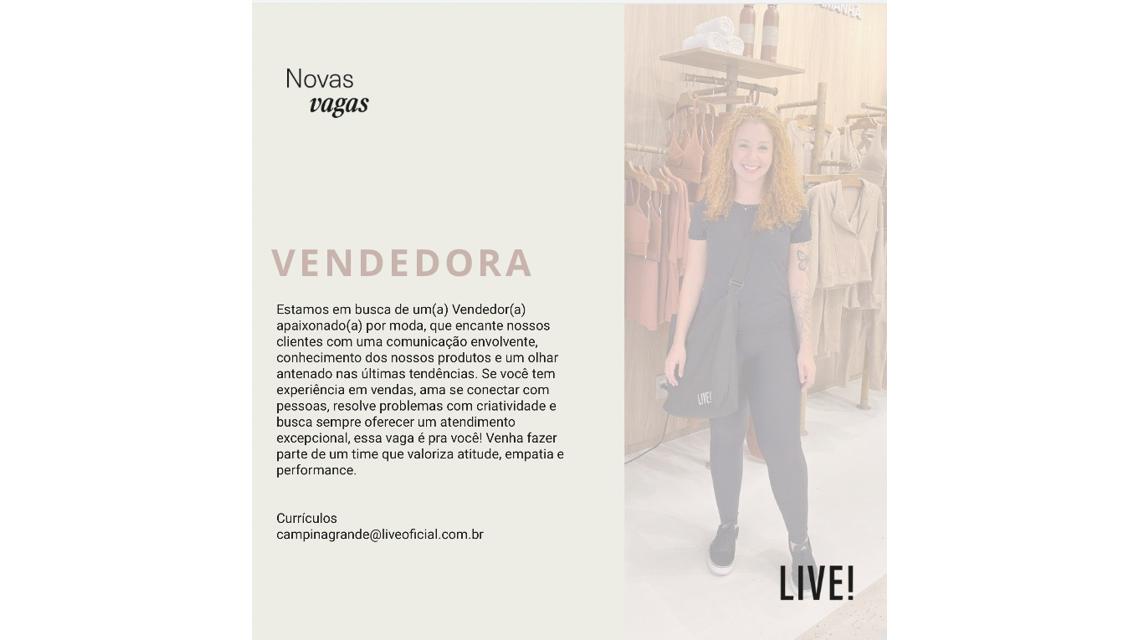 A LIVE! busca por um profissional comprometido, que vista a camisa da empresa e que esteja sempre em busca de crescimento profissional. Oferecemos um ambiente de trabalho dinâmico, com uma equipe engajada e apaixonada pelo que faz, além de treinamentos e capacitações para desenvolver ainda mais suas habilidades.